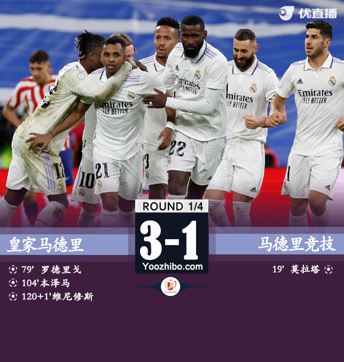 皇马3-1马竞进4强 罗德里戈超级一条龙本泽马加时破门