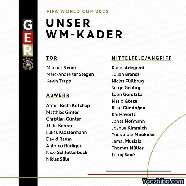2022卡塔尔世界杯德国球衣号码如下: