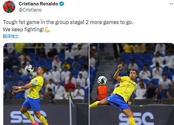 闷平同城死敌!C罗陷入得分荒,获主帅力挺,赛后发文鼓舞全队