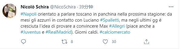 过去几个月那不勒斯都在联系斯帕莱蒂,但近期他们转向了阿莱格里,对他的兴趣越来越浓厚。