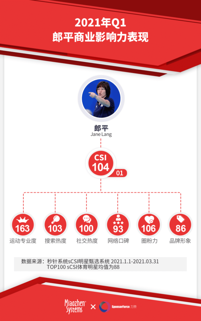基于秒针系统sCSI体育明星甄选系统*及SocialMaster社交数据库,结合大数据、营销、体育领域顶级专家的意见