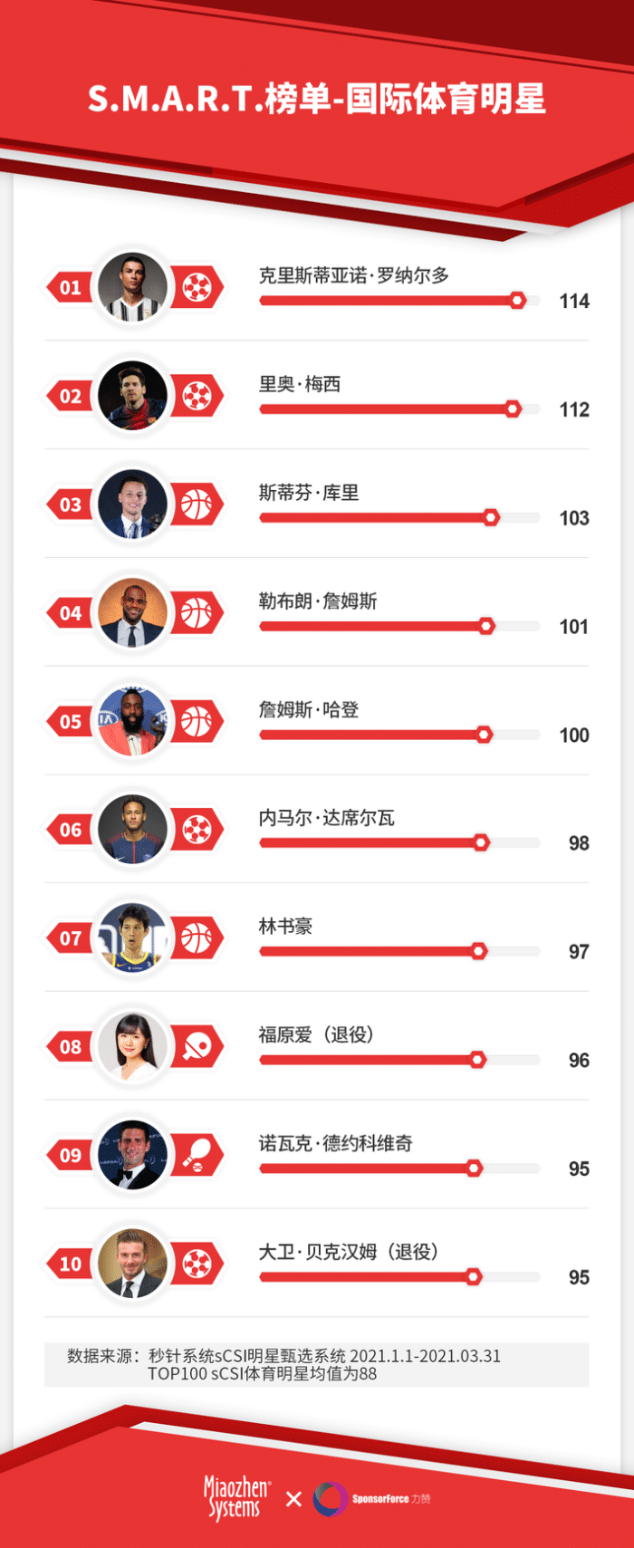 重磅! 2021年Q1体育明星商业影响力排行发布