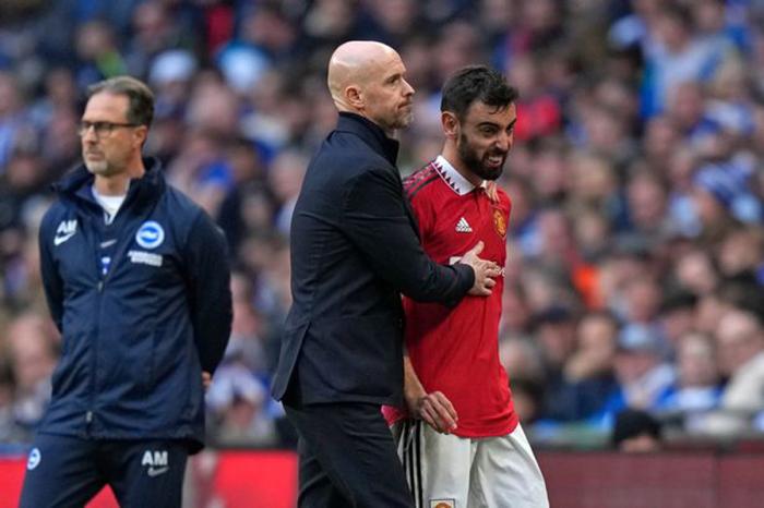 来源:24直播网04-24 12:1724直播网讯04月24日曼联队长布鲁诺·费尔南德斯在足总杯半决赛对布莱顿的比赛中没能坚持到最后,他上半场发挥出色,多次威胁到海鸥军团的球门。然而,他不幸遭遇脚踝受伤,让其下半场的发挥下滑,甚至没能像平时那样大范围跑动。加时赛中,B费更是被提前换下,这是不寻常的做法,因为比赛很可能进入点球大战,葡萄牙中场是球队头号点球手。