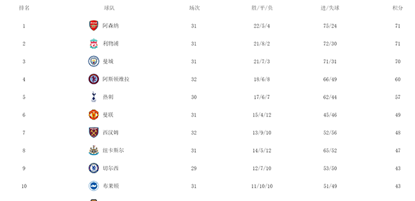 你的位置: 24直播网 足球直播 英超 利物浦曼联激战平局,阿森纳逆袭夺榜首之位