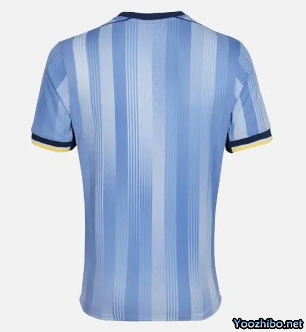 主色调选取的浅蓝色,恰似伦敦在晴朗天空下波光粼粼的泰晤士河,宁静而又深邃。这种色调与主场球衣那纯净无暇的纯白形成了极为鲜明的对比,淋漓尽致地彰显出了热刺客场球衣别具一格的独特风格。与此同时,球衣上那精雕细琢的渐变图案设计,仿若潺潺流动的水波,不但极大地增强了球衣的视觉效果,更充分体现了热刺俱乐部对创新理念和独特风格的执着不懈追求。