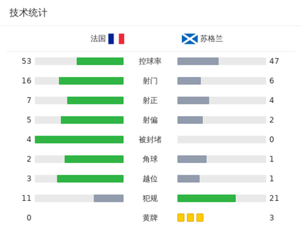 法国4-1苏格兰 姆巴佩传射帕瓦尔双响