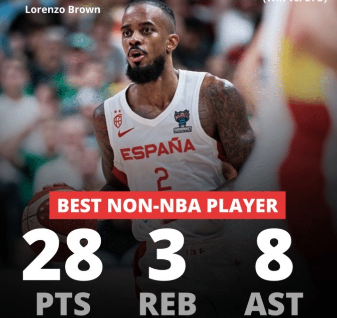 欧洲杯如火如荼地进行着,期间归化球员的表现非常出色,希腊有字母哥,但依旧归化了多西,后者投射三分球不含糊,发挥抢眼。还有西班牙的后卫洛伦佐-布朗,在NBA都打不上比赛,曾在CBA浙江队和广州队效力,但是在欧洲杯极其出色,率领西班牙队淘汰立陶宛,晋级八强。布朗全场轰下28分8助攻,加时赛布朗一个人12-11领先立陶宛全队。赛后对手都表示如果没有归化球员布朗,西班牙会是什么样子。
