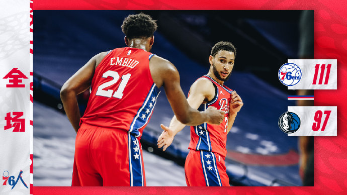 - 【集锦】[微博全场集锦] 恩比德23+9 西蒙斯15+7 东契奇19分 76人主场轻取独行侠2021-02-26 09:09:34