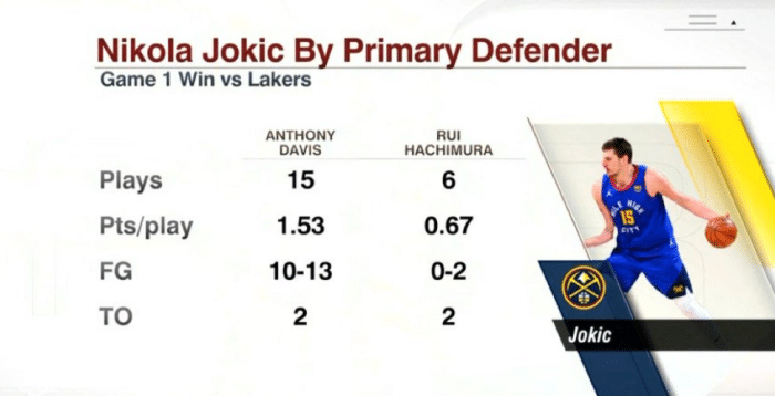 西决G1,哈姆的三后卫首发昏招导致球队内线失守并且一度落后多达21分,在陷入困境的情况下,哈姆末节主动变阵,弃用拉塞尔并且安排八村垒主防约基奇,如此变阵的效果很明显,詹姆斯和浓眉带队疯狂反扑,可关键时刻詹姆斯出现致命失误,最终湖人6分惜败输掉比赛。