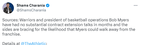 曝勇士总经理大概率离队:双方谈判无进展 揭秘更多内幕他无意顶薪