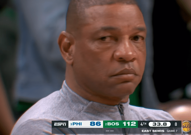 抢七生死战,76人第三节10-33溃不成军,里夫斯坐在替补席双头抱头,末节比赛早早沦为垃圾时间,最终76人惨败24分耻辱出局;费城在3-2领先的情况下,连续错失2个赛点被逆转淘汰;里弗斯该为球队输球而背锅吗?执教生涯至今,季后赛终结战33负历史最多,10次输掉抢七大战历史最多以及第7次被翻盘,费城再次遭遇里弗斯魔咒。