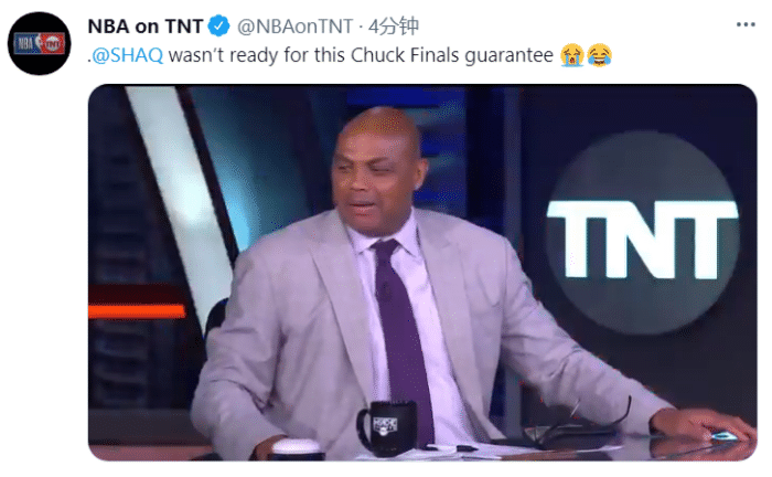 赛后,在TNT演播室中,主持人和嘉宾撺掇巴克利做预测。于是巴克利稍微思考之后,说道:“我将选择密尔沃基雄鹿!”随后,巴克利按下了自己身前的“保证”按钮。现场也迅速响起特效,大批彩带落到了奥尼尔头上。