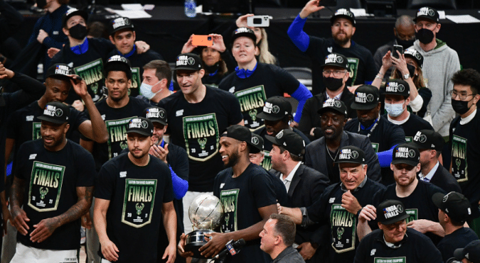 24直播网讯 今天NBA总决赛的两支球队出炉,在字母哥受伤的情况下,米德尔顿带领雄鹿时隔47年杀入总决赛,太阳则是提前淘汰快船晋级到最终的决战舞台。这两支球队都并非是联盟的传统球队,太阳从未拿到过总冠军,而雄鹿队史上也只有1次总冠军的经历,还是在整整50年前,所以不论双方谁夺冠,都将是本世纪NBA联盟的新王加冕。同时球员层面,克劳德是本赛季总决赛两队阵容中唯一打过总决赛的球员,所以两队总决赛经验都不丰富,这也给系列赛增加了很多悬念。