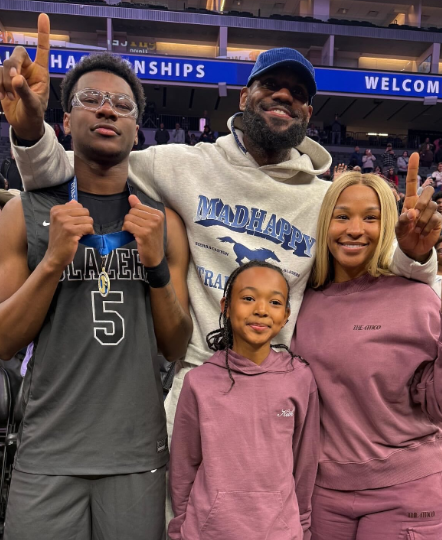 就在昨天,D1州际冠军赛的赛场上,布莱斯所在的塞拉峡谷高中与劲敌林肯高中展开了一场激烈角逐。比赛过程跌宕起伏,双方比分紧咬,最终塞拉峡谷高中凭借出色发挥,以58-53的比分战胜对手,成功捧起州际冠军奖杯。为了见证儿子这一荣耀时刻,詹姆斯特意请假并获得湖人批准,携妻子萨瓦娜以及女儿朱莉一同前往萨克拉门托观赛。当比赛胜负悬念落定,塞拉峡谷高中锁定冠军的那一刻,詹姆斯难掩激动之情,快步走进球场,与球员们一同激情庆祝。夺冠后的他,第一时间拥抱并祝贺布莱斯,合影时脸上洋溢着骄傲与幸福的笑容,画面令人动容。