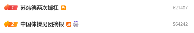 苏炜德两次掉杠和中国体操男团摘银冲上热搜第一和第二名引热议,中国体操队错失夺冠的绝境机会,最后时刻的几次失误太致命了,输得与中国女篮惨遭西班牙逆转一样令人憋屈。