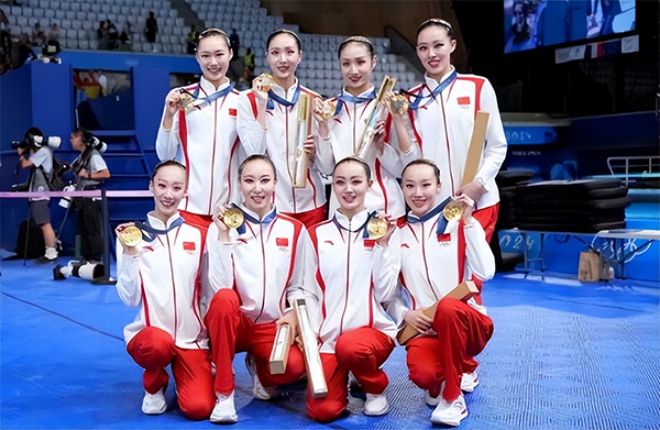 在花游赛场上,此前已经领先接近70分的中国队,没有任何悬念地拿下金牌。在最后一项技巧自选比赛中,中国队以283.6934分再次排名榜首,最终以三项总分996.1389分夺得金牌,领先第二名美国超过80分。这也是中国奥运史上首枚花游金牌,创造历史。