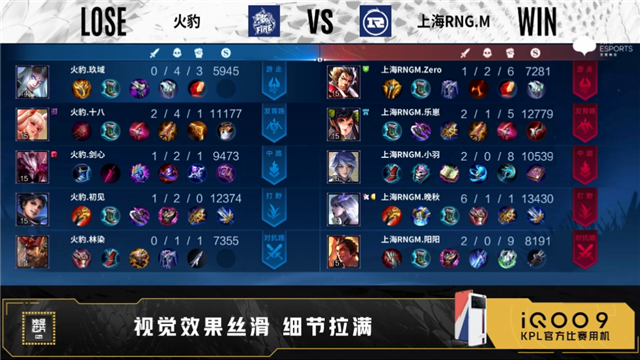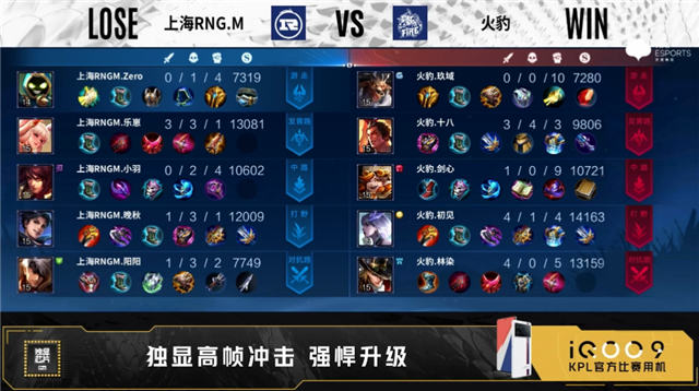 开局火豹中射换线。1分57秒中路上海RNG.M击杀张飞,拿下一血。3分10秒火豹那些暴君。4分50秒河道团战上海RNG.M击杀不知火舞,打出0换1。5分40秒对抗路上海RNG.M击杀娜可露露,6分12秒发育路火豹击杀马可波罗。6分54秒对抗路上海RNG.M击杀不知火舞,打出0换2,摧毁敌方发育路外塔。7分35秒野区上海RNG.M击杀张飞,,打出0换2,火豹拿下暴君。8分26秒上海RNG.M摧毁敌方对抗路外塔,拿下主宰。9分20秒火豹摧毁敌方中路外塔、对抗路外塔、发育路外塔。10分10秒火豹拿下暗影暴君,暗影主宰处团战火豹打出0换2。11分29秒野区团战火豹打出0换2。12分13秒上海RNG.M击杀蒙犽,摧毁敌方中路外塔,火豹拿下暗影主宰。14分火豹拿下暗影暴君,野区打出1换2,摧毁敌方发育路二塔。15分39秒发育路火豹娜可露露二连击破,打出0换5,团灭对手摧毁水晶拿下比赛。