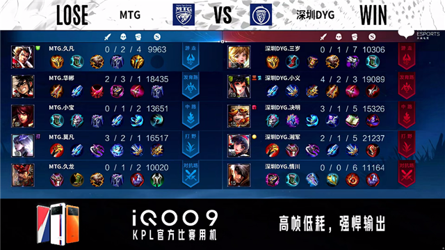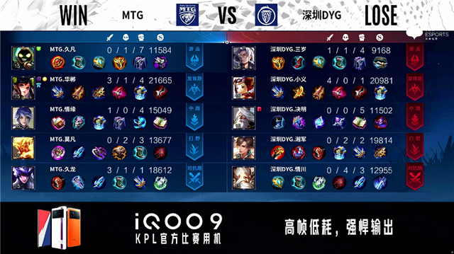 1分53秒,MTG镜下路击杀孙尚香拿下一血。2分22秒,MTG控下暴君,随后深圳DYG击杀蒙犽。3分30秒,MTG蒙犽下路击杀孙尚香。4分33秒,MTG破掉深圳DYG下一塔。5分36秒,深圳DYG控下先知主宰。6分32秒,MTG控下暴君。8分34秒,MTG小兵摧毁深圳DYG下二塔。9分03秒,深圳DYG破掉MTG下一塔。10分20秒,深圳DYG控下暗影暴君,随后MTG控下暗影主宰。10分40秒,MTG击杀沈梦溪。11分钟,中路团,双方1换1。11分42秒,深圳DYG沈梦溪击杀镜。12分11秒,深圳DYG破掉MTG中一塔。12分31秒,深圳DYG破掉MTG下二塔。12分52秒,深圳DYG破掉MTG上二塔。14分05秒,深圳DYG控下暗影暴君。14分41秒,深圳DYG击杀镜,随后破掉MTG中二塔。16分14秒,深圳DYG控下暗影主宰。16分45秒,深圳DYG小兵摧毁MTG上高地。18分06秒,深圳DYG控下暗影暴君。19分11秒,深圳DYG破掉MTG下高地。22分18秒,上路团,双方互换一波复活甲。23分50秒,深圳DYG击杀张飞。24分16秒,深圳DYG控下风暴龙王。25分12秒,深圳DYG破掉MTG中高地。26分03秒,深圳DYG边团边拆摧毁MTG水晶率先拿到赛点。