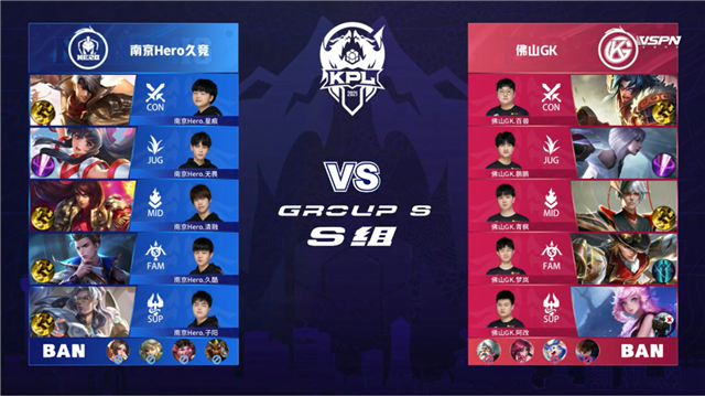 2分17秒,南京Hero裴擒虎拿下暴君。5分15秒,南京Hero拿下先知主宰。5分52秒,南京Hero破掉佛山GK上一塔。6分35秒,南京Hero控下暴君。8分03秒,佛山阿古朵配合关羽击杀裴擒虎拿下一血。8分14秒,佛山GK中路击杀西施。9分29秒,佛山GK控下先知主宰。11分29秒,南京Hero拿下暗影暴君。12分37秒,南京Hero中路击杀周瑜,随后破掉佛山GK中一塔。13分01秒,南京Hero控下暗影主宰。13分55秒,南京Hero破掉佛山GK下二塔。15分42秒,南京Hero控下暗影暴君。16分47秒,南京Hero强推掉佛山GK中二塔。17分23秒,南京Hero控下暗影主宰。18分30秒,野区团,佛山GK打出0换4。19分19秒,佛山GK强推掉南京Hero下高地。22分06秒,佛山GK击杀裴擒虎。22分48秒,佛山GK控下风暴龙王。23分35秒,佛山GK破掉南京Hero上二塔。23分50秒,佛山GK击杀裴擒虎随后破掉南京Hero中二塔。24分21秒,佛山GK先后破掉南京Hero上中、高地。24分55秒,南京Hero高地反打打出1换3。25分45秒, 南京Hero反推掉佛山GK中高地。27分50秒,南京Hero抢到风暴龙王,随后团战打出1换3。28分29秒,南京Hero击杀敌方最后两人后摧毁水晶赢下比赛!