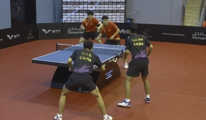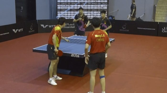 第一局的比赛开始,两对组合打得十分胶着,比分一度来到了5:5平,王楚钦/梁靖崑连续得分,梁靖崑扣球得手,11:7,王楚钦/梁靖崑拿下第一局。第二局的比赛曹巍/徐瑛彬轰出了7:2的开局,11:5,曹巍/徐瑛彬扳回一局,大比分变成了1:1平。