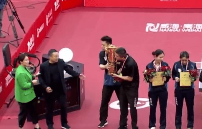 刘国梁搞笑举奖杯,王楠合影让C位,1V3失败,孙颖莎仍是大赢家