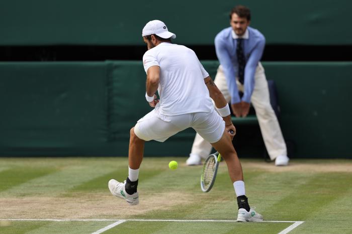 莫拉托格鲁接着说:“虽然他的反手击球较弱,但贝雷蒂尼已经练就了一个非常棒的削球技术,这在草地上非常理想。他用它来迫使对手向上击球,让他有更多正手进攻的机会。”