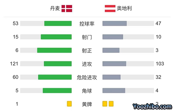 全场比赛结束,丹麦2-0战胜奥地利。