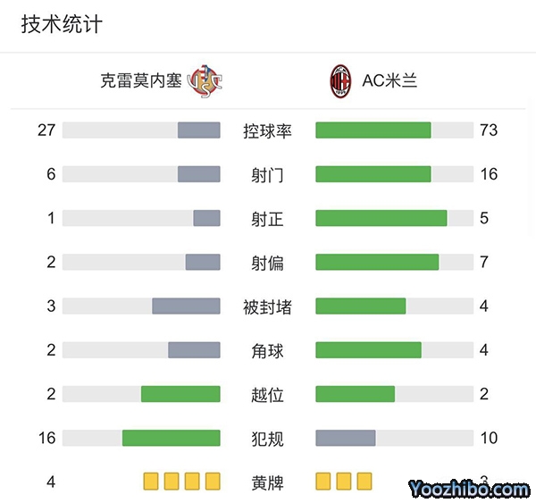 AC米兰0-0克雷莫纳 奥里吉失单刀+进球越位