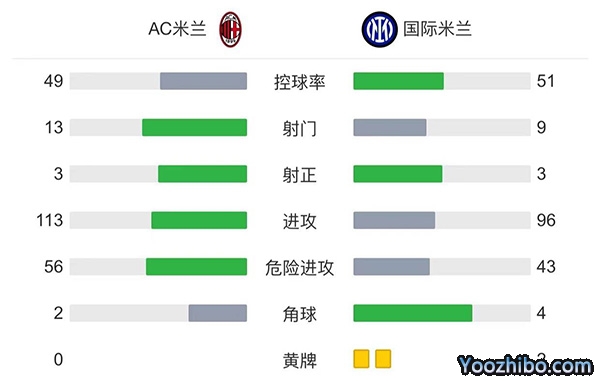 全场比赛结束,AC米兰主场0-0战平国际米兰。