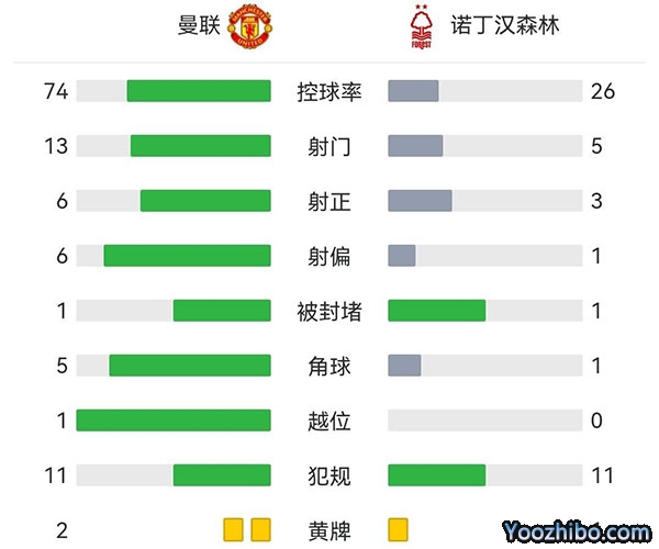 全场比赛结束,最终曼联2-0击败诺丁汉森林!