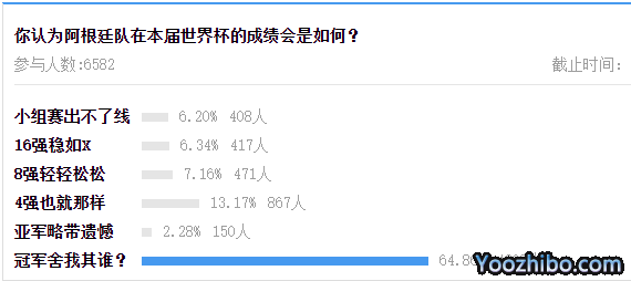 阿根廷队连续35场比赛不败,球队攻防很平衡,更衣室气氛极好,非常团队,这在世界杯年是非常关键的。那么说这支阿根廷队可以在世界杯取得什么样的成绩呢?也吸引了数千球迷球迷的投票。